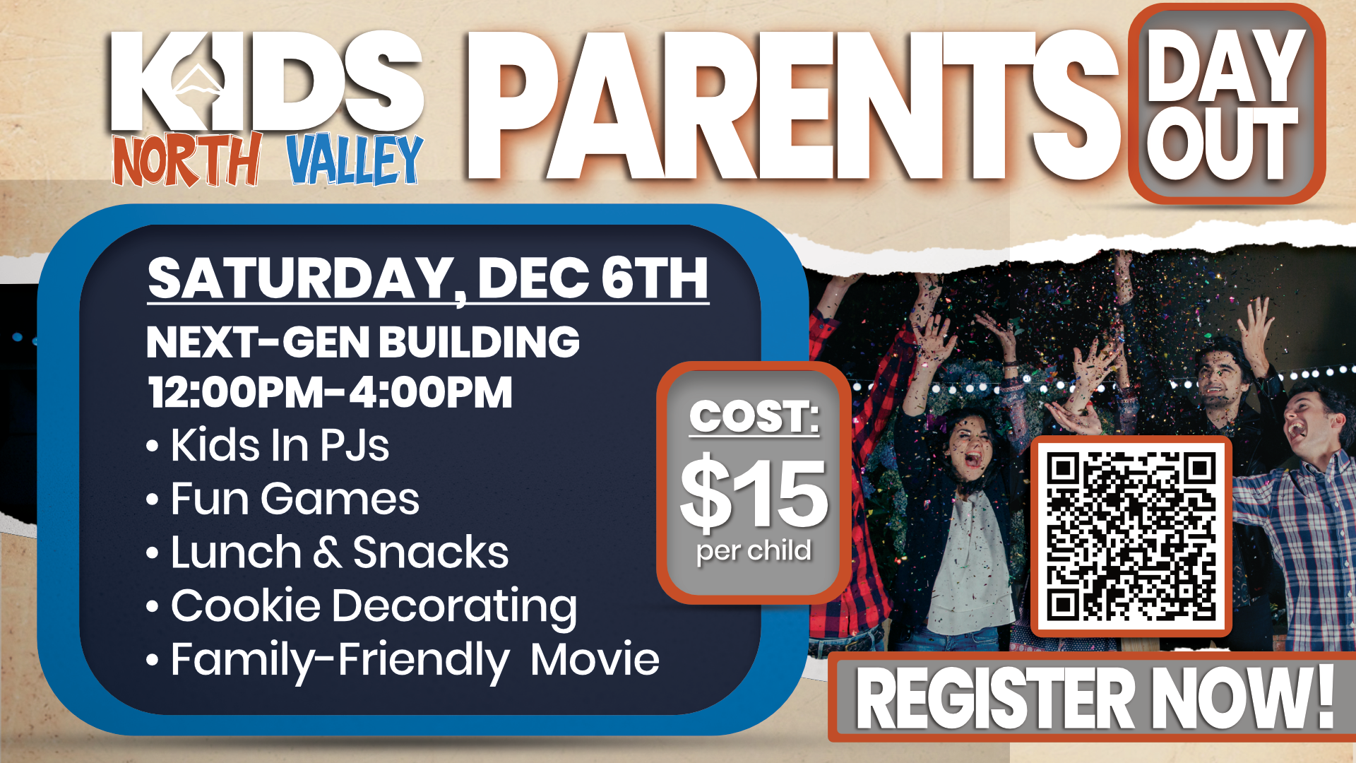 Need a few hours to Christmas shop or enjoy an afternoon out? We've got the kids covered with games, snacks, and fun! Click here to register: https://northvalleychurch.ccbchurch.com/goto/forms/396/responses/new